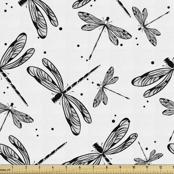 Dragonfly Fabric By The Yard Flea Sketch Like Monochrome Style Design Repetitive Flying Creatures Decorative Upholstery Fabric For Sofas And Home Accents Charcoal Grey And White By Ambesonne Walmart Com