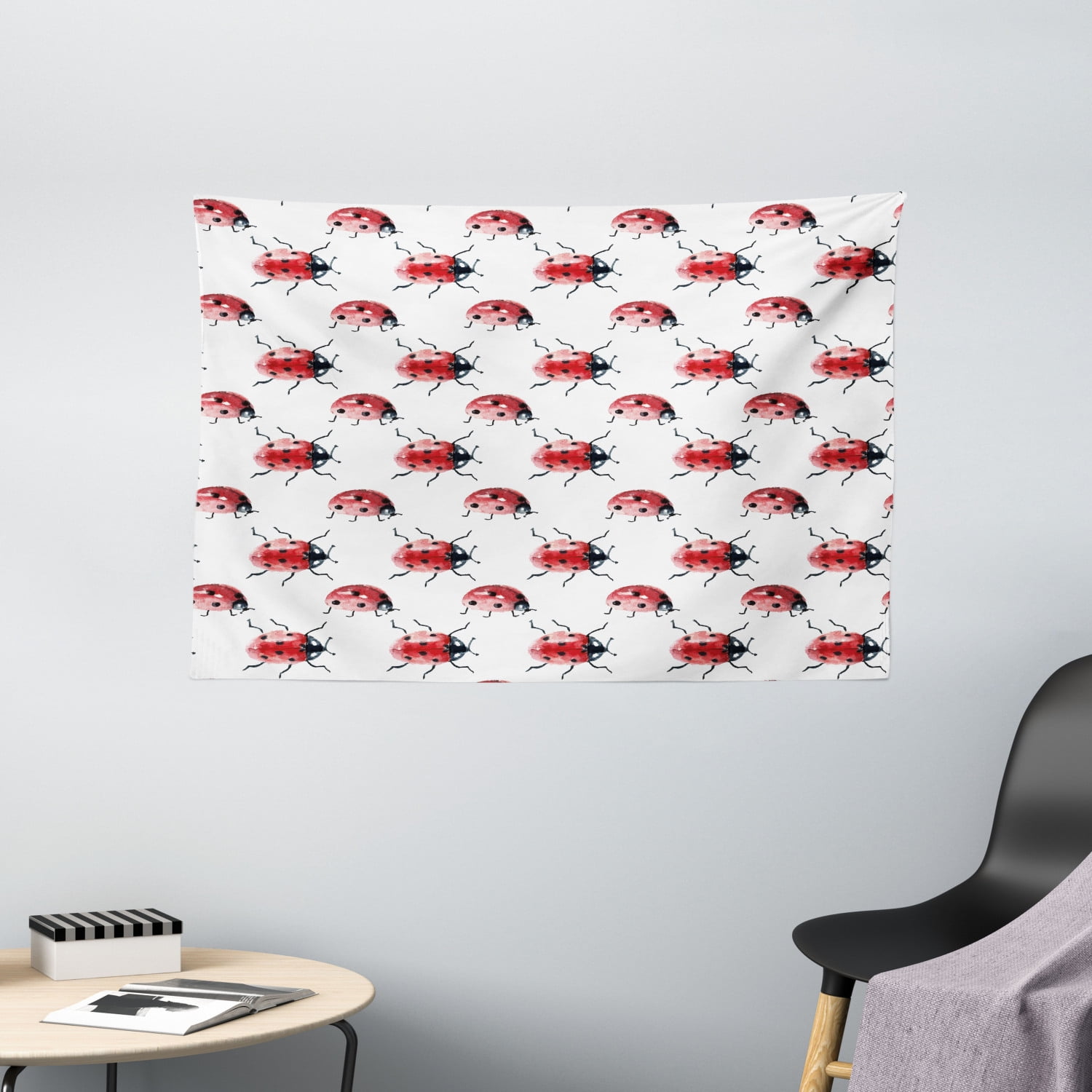 Watercolor Tapestry Lady Bug Pattern Cute Animal Design Insect Ornamental Spring Image Wall Hanging For Bedroom Living Room Dorm Decor 60w X 40l Inches Vermilion Black White By Ambesonne Walmart Com
