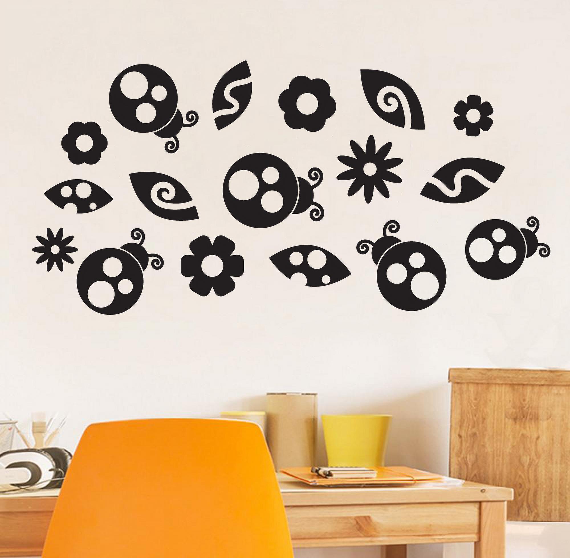 Ladybug Little Flowers Ladybugs Lady Bug Bugs Cute Animal Insect Vinyl Design Wall Sticker Art Decal Boy Girl Kid Room Bedroom Nursery Kinder Playroom Home Decor Stickers Decoration Size 14x20 Inch